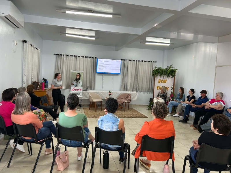 Participaram a enfermeira da Oncologia, Laura Cocco, com apresentação sobre “Câncer: como prevenir?”; e a psicóloga hospitalar Stephani Rohden de Oliveira, com o tema Saúde Mental.
