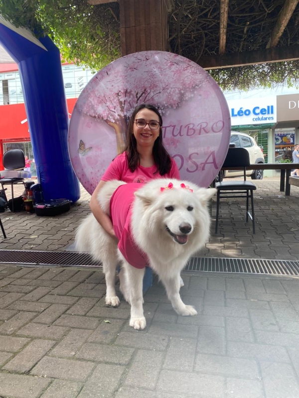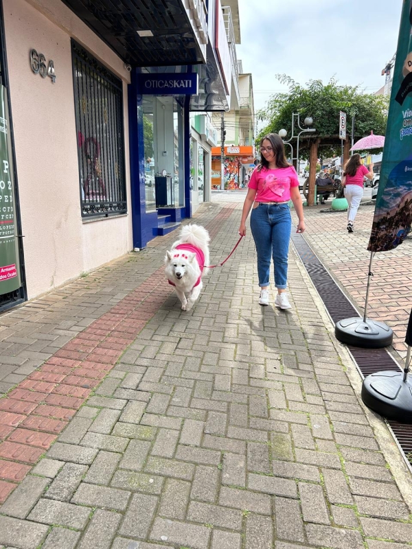 Foi realizado um pedágio informativo, com entrega de cartilhas informativas, repasse de informações sobre prevenção e diagnóstico precoce do câncer de mama e do colo de útero. O evento também teve a presença da mascote Alaska, que já participou da Terapia Assistida com Cães, com sua tutora, a médica oncologista Camila Amaral.