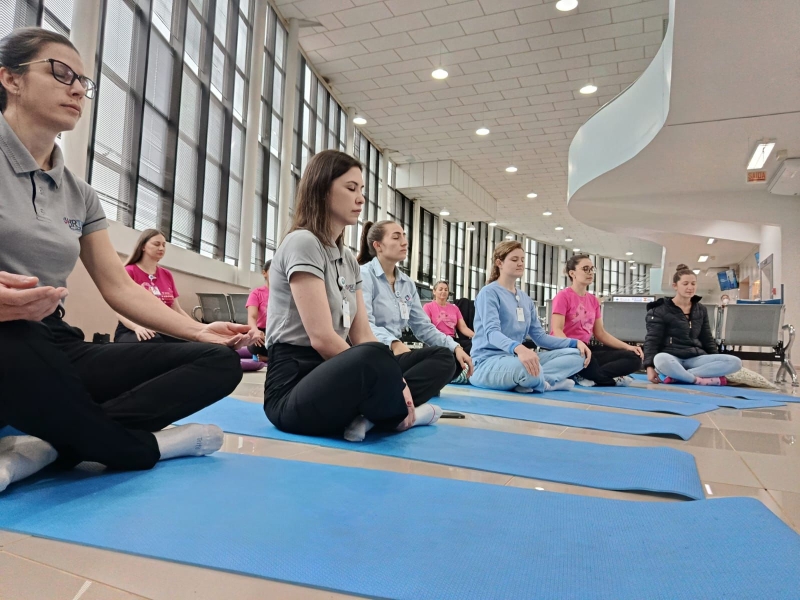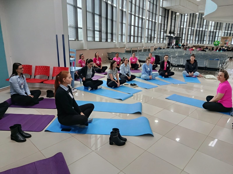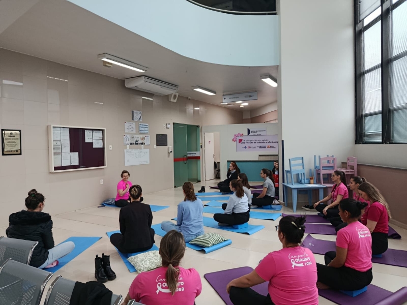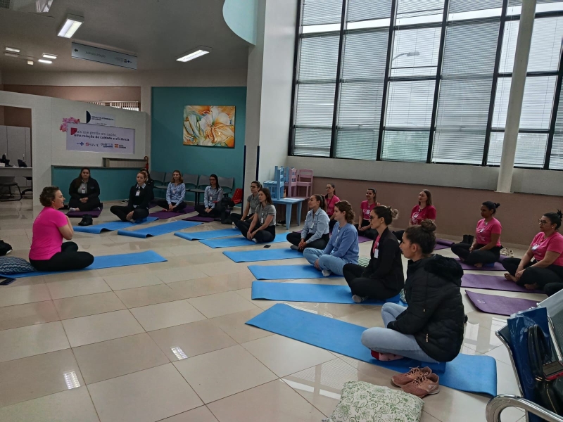 No dia 17, a professora e paciente do HRTGB-Santé, Adriane Dal Bosco, ministrou aula de Ioga com colaboradores da unidade. Anteriormente, ela já havia desenvolvido a ação no Setor de Oncologia, envolvendo paciente e acompanhantes.