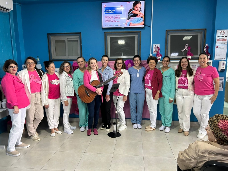 No último dia 29, voluntárias da Rede Feminina de São Miguel do Oeste realizaram uma ação na recepção da Oncologia, com um café da manhã especial e apresentações artísticas da cantora Daieli Luzia.