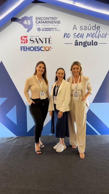 Diretores e colaboradores do Hospital Regional Terezinha Gaio Basso - Instituto Santé de São Miguel do Oeste participam na última semana do 45º Encontro Catarinense de Hospitais e V Congresso SC de Gestão de Saúde, em Florianópolis.