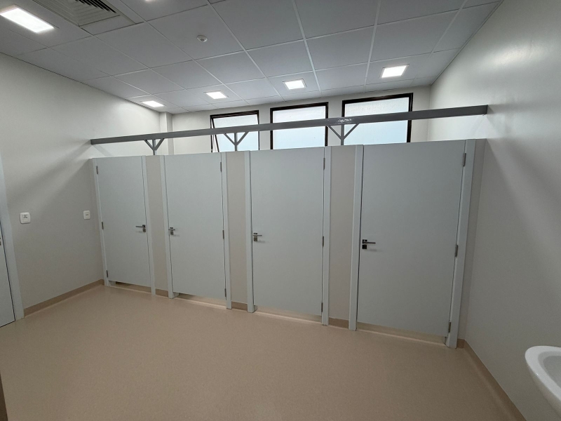 No local, foi realizada requalificação da infraestrutura física dos sanitários, com foco na conformidade normativa e na criação de um ambiente capaz de promover bem-estar, segurança e higiene.