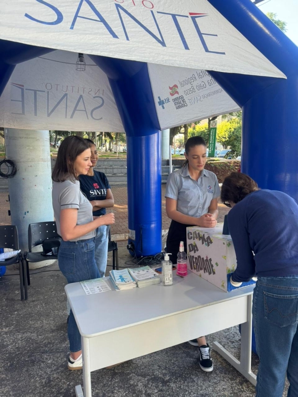Equipes do Hospital Regional Terezinha Gaio Basso - Instituto Santé, participaram no último sábado (11) do projeto Saúde em Movimento, evento alusivo ao Dia Mundial da Saúde. O evento ocorreu durante toda a manhã na Praça Walnir abortado Daniel, em uma parceria do HRTGB com a Secretaria Municipal da Saúde e Unoesc.
