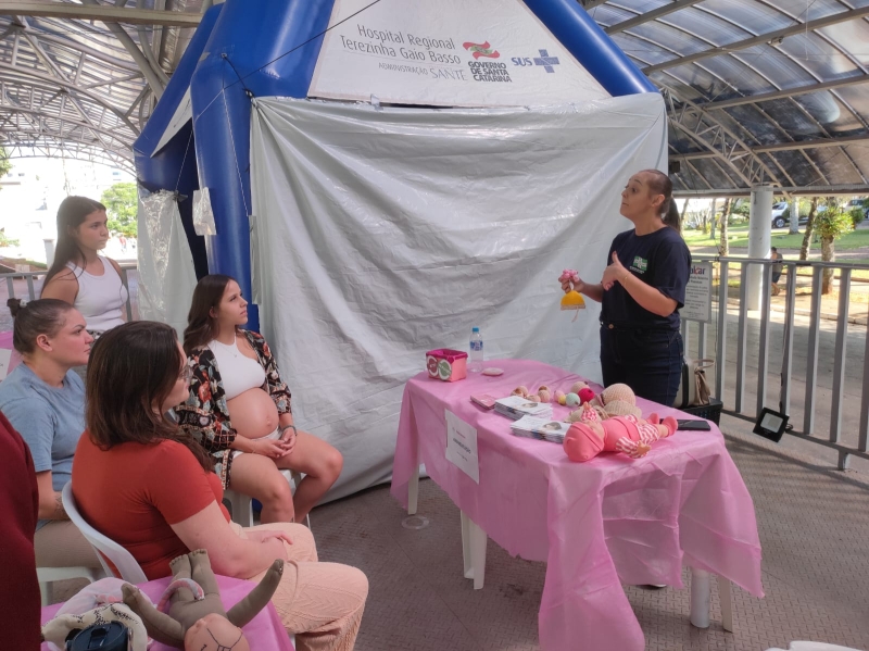 Na última sexta-feira (10), o Hospital Regional Terezinha Gaio Basso – Instituto Santé, por meio do Grupo de Gestantes Acolher, reuniu as futuras mamães no “Conexão Materna”. O encontro é um evento anual do grupo, desta vez realizado na Praça Walnir Bottaro Daniel, em São Miguel do Oeste, em parceria com a Secretaria Municipal de Saúde e Unoesc.