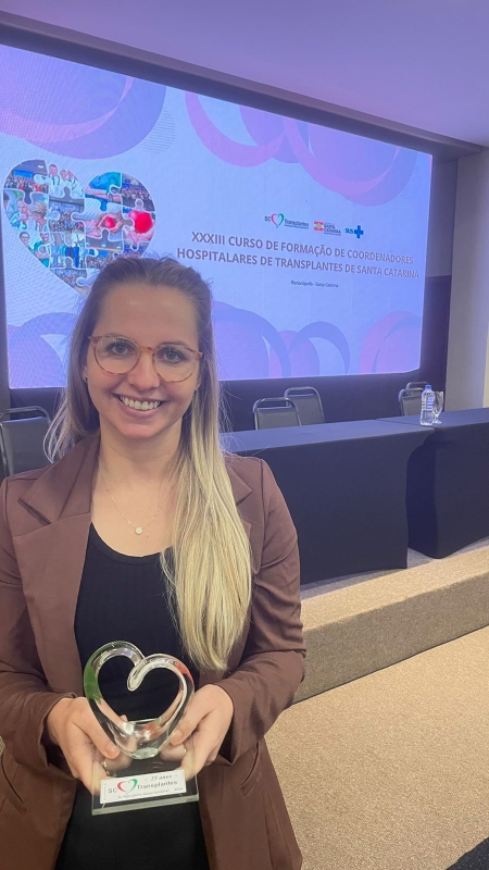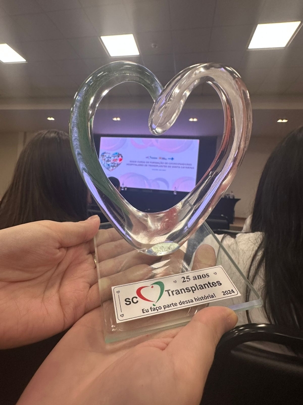 No evento a equipe também recebeu um troféu comemorativo aos 25 anos da SC Transplantes, representativo a participação do HRTGB-Santé há 15 anos com a Comissão Hospitalar de Transplantes.